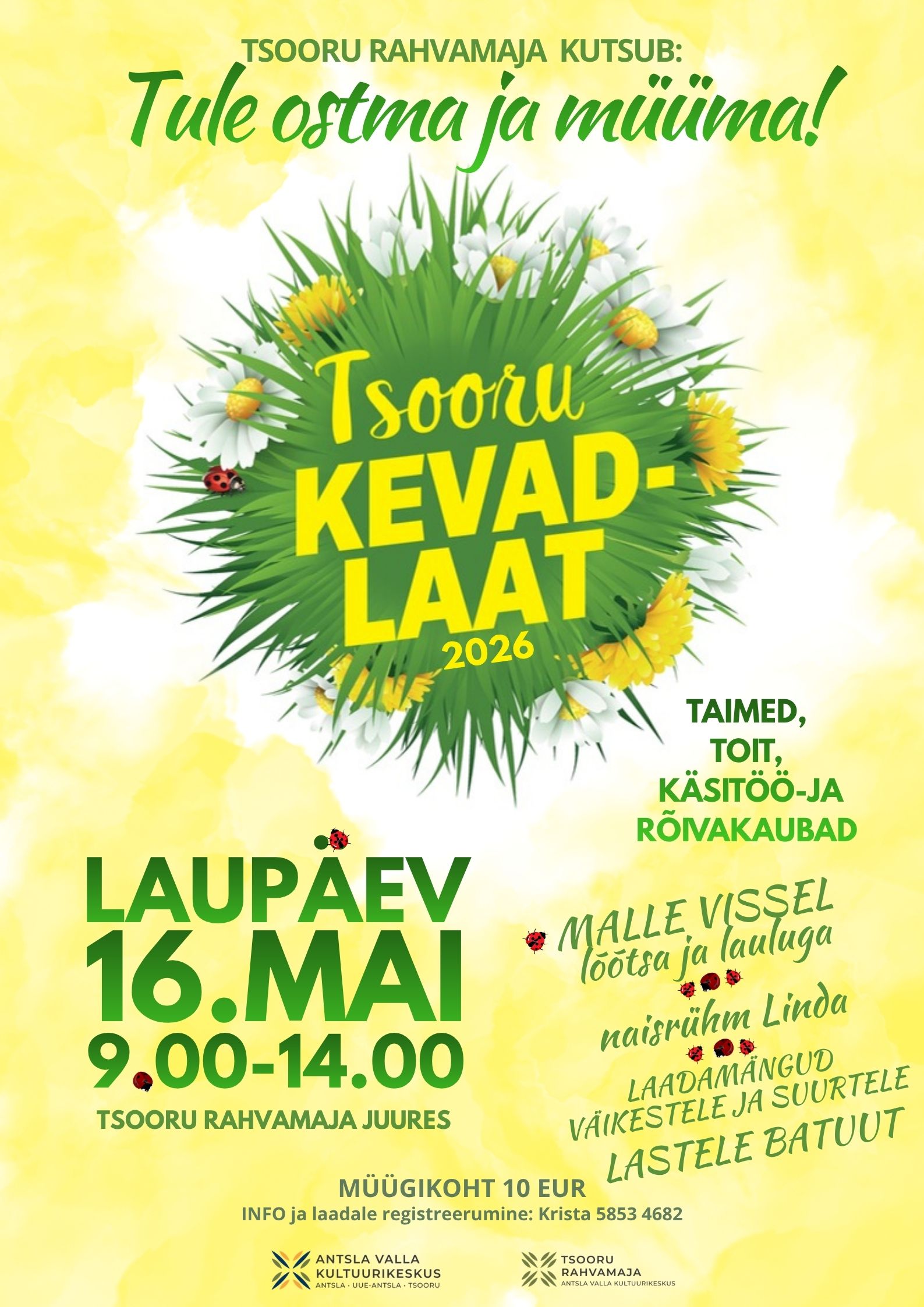 Tsooru Rahvamaja Tsooru, Antsla vald, Võrumaa, EestiInfo ja laadale registreerumine : Krista 5853 4682 Taimed, toit, käsitöö-ja rõivakaubad ning kultuuriprogramm Tsooru rahvamaja juures