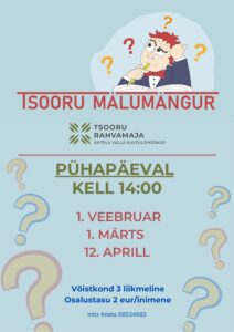 Meelelahutuslik mälumäng, kus saab teadmisi proovile panna erinevatel teemadel Osalustasu 1 eur/osaleja Kuni 10 võistkonda (max 3 liiget )